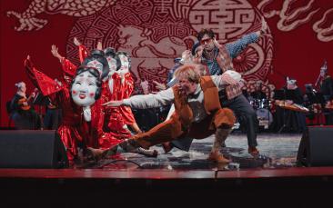 объединив в одних сценах артистов оркестра, артистов-вокалистов, а также балет и